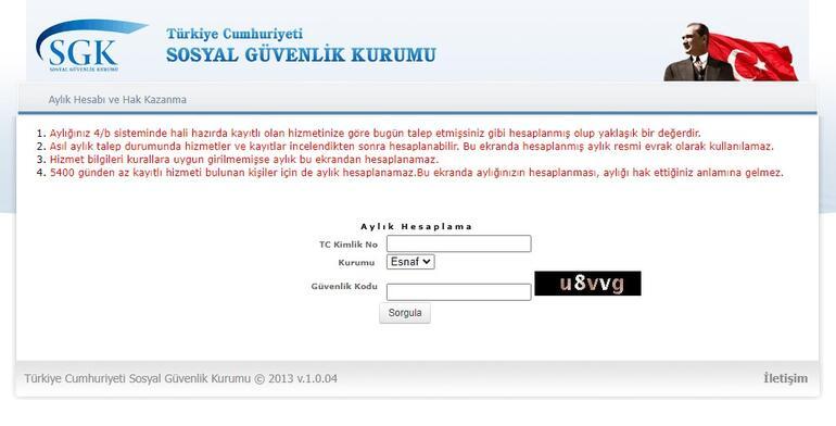 - uyg.sgk.gov.tr 4B emekli maaşı hesaplamasayfasına gidin.