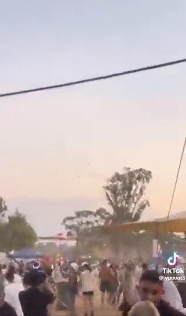 Görüntülerde festival alanındaki birçok kişinin olacaklardan habersiz dans ettikleri görülürken, videoyu çeken kişi havadaki paramotorların geliş anını da kayıt altına aldı.