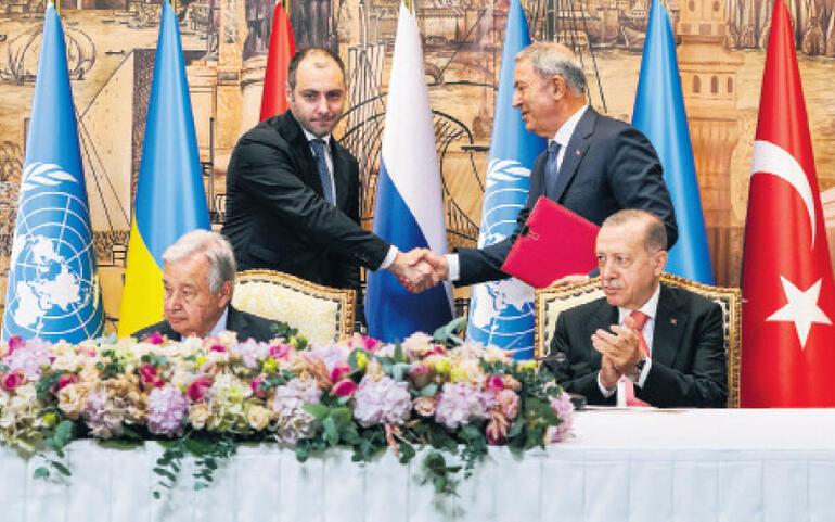 Gülden Çoktan – Rusya ile Ukrayna savaşıyla başlayan gıda krizini aşmaya yönelik önemli bir adım atıldı. Ukrayna limanlarında mahsur kalan milyonlarca ton tahılın Karadeniz üzerinden ihracatının yeniden başlatılmasını içeren anlaşma, Cumhurbaşkanı Recep Tayyip Erdoğan ve Birleşmiş Milletler Genel Sekreteri Antonio Guterres ile Rusya ve Ukrayna heyetlerinin katılımıyla İstanbul’da imzalandı. Cumhurbaşkanlığı Dolmabahçe Ofisi’ndeki törende, ‘Tahıl ve Yiyecek Maddelerinin Ukrayna Limanlarından Emniyetli Sevki Girişimi Belgesi’ni Türkiye adına Milli Savunma Bakanı Hulusi Akar, Rusya adına Savunma Bakanı Sergey Şoygu, Ukrayna adına Altyapı Bakanı Aleksandr Kubrakov ve imza törenine tanıklık eden BM adına Genel Sekreter Guterres imzaladı.